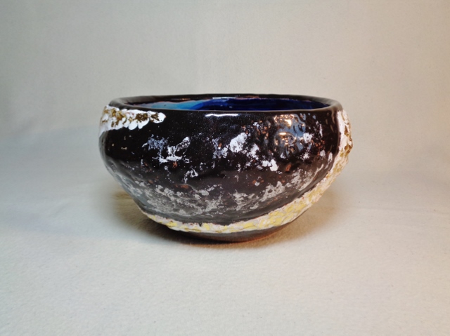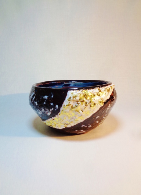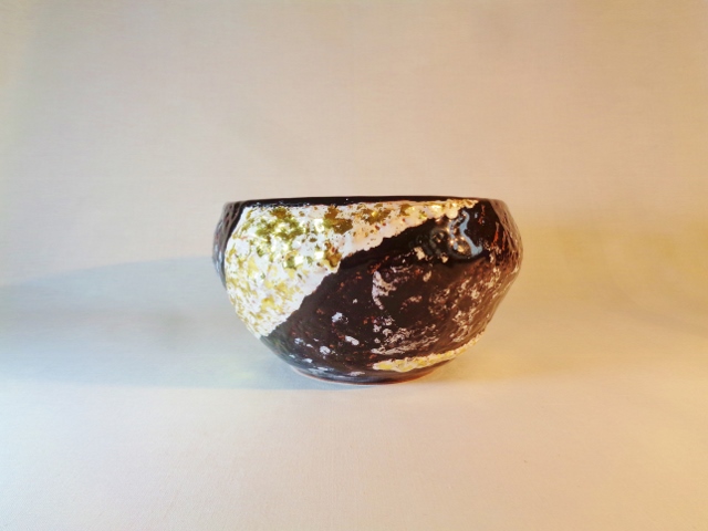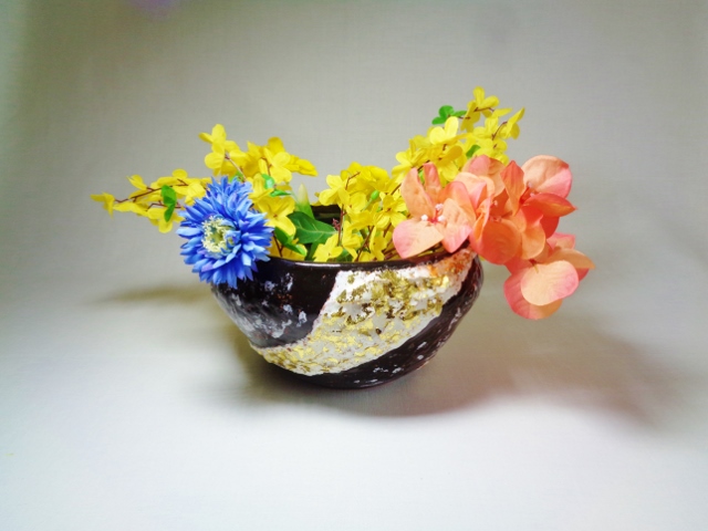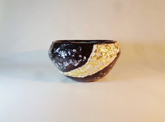 Fekete-fehér kerámia kaspó, a texturált felület barokk arany fémfüsttel díszítve. Különleges, exkluzív ajándék. A kaspó átmérője: 20 cm.
