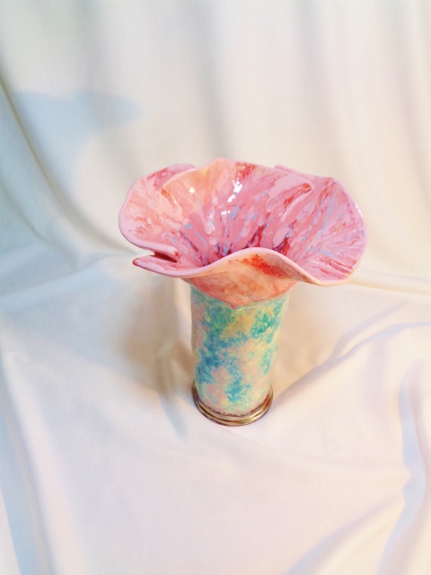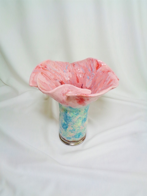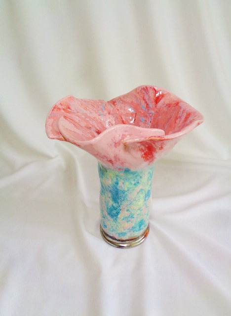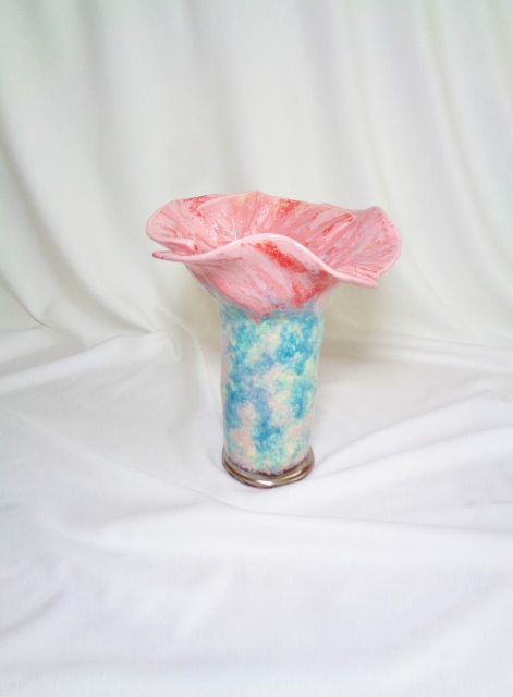 Virág váza exkluzív kerámia, a mázazásnak és az egyedi formának köszönhetően különlegesek a hatások. Szép ajándék esküvőre, nászajándéknak. A váza átmérője: 20 cm.
